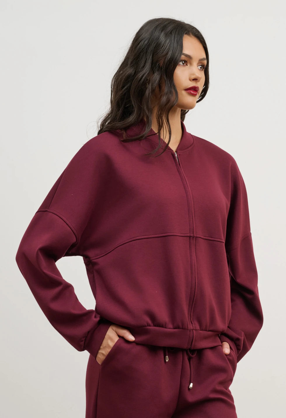 Sweatshirt: Sweatshirt jacket with metal zipper, long sleeves with ribbed cuffs, slightly bomber-style cut, and relaxed fit.
