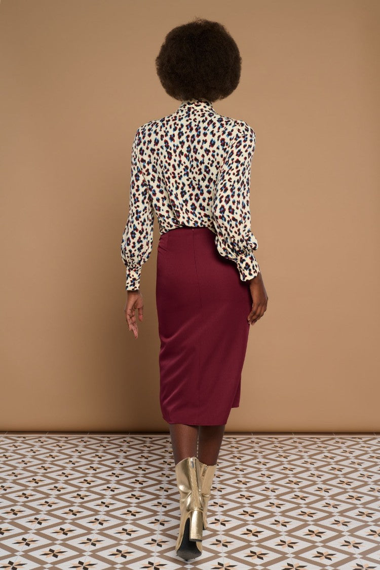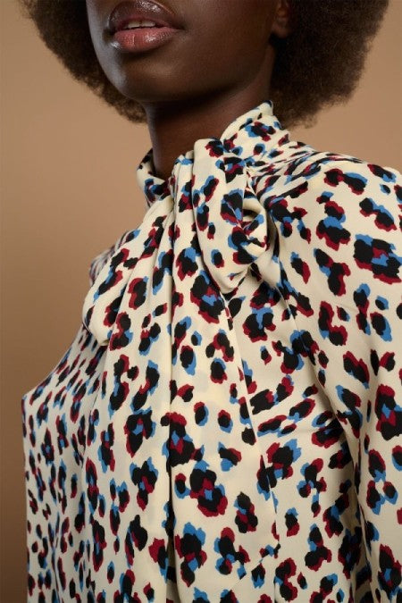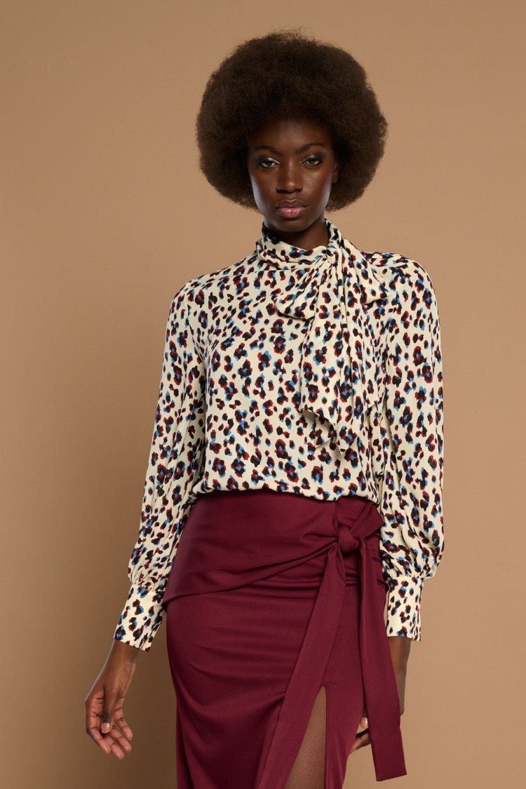 Perkins neck blouse and long sleeves finished in cuff.