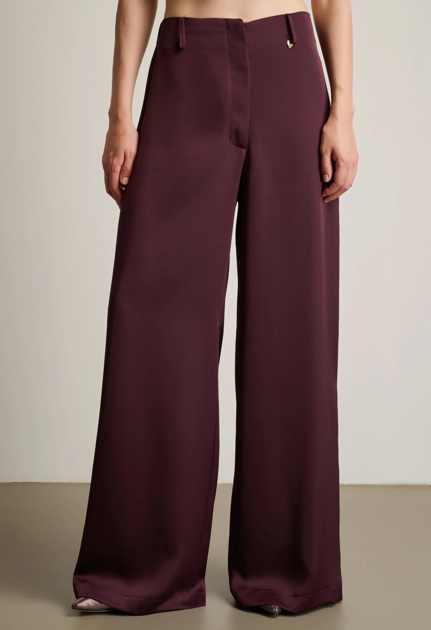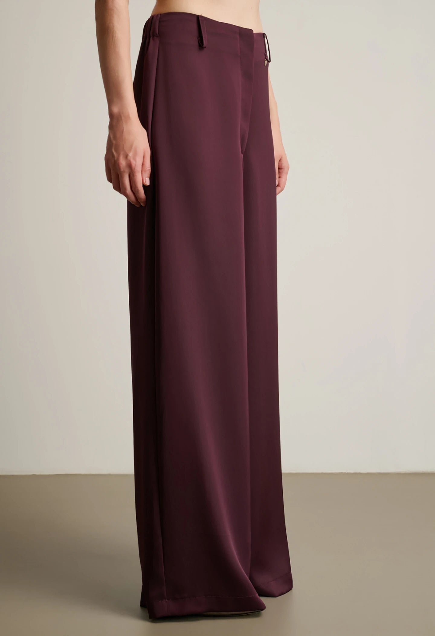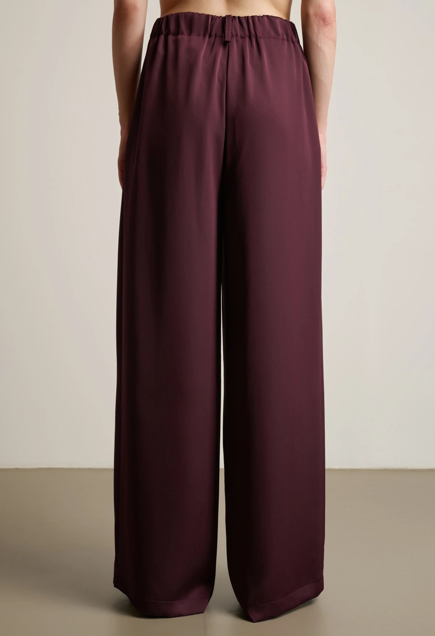 Palazzo trousers, side zipper, elastic waistband at the back.